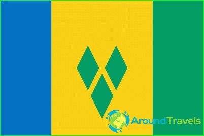 In the center of the yellow part of the flag of Saint Vincent and the Grenadines, there is an image of three diamonds, the color of which coincides with the color of the free edge. These figures are called «diamonds», and their combination on the flag resembles the letter V of the English alphabet, which symbolizes the name of the island of Vincent.