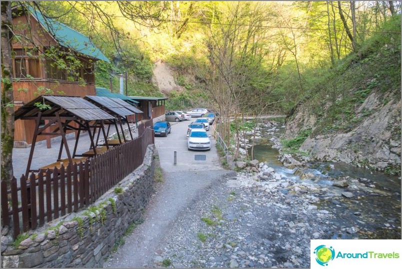 Cafe «Snake» stands at the end of a dirt track, along which even an understated Priora can easily pass, not to mention ordinary human sedans. You can park either on the side of the road before reaching the cafe, or on the site near «Snakes», which is reserved only for the guests of the establishment. I don't know how they figure out who is a guest and who is an outsider, but there is really little space, literally for 7-10 cars with a very tight parking lot. I left the car in advance, fortunately - the roadside is wide there. If you wish, you can even turn around on this road, without the risk of falling into a mountain river.