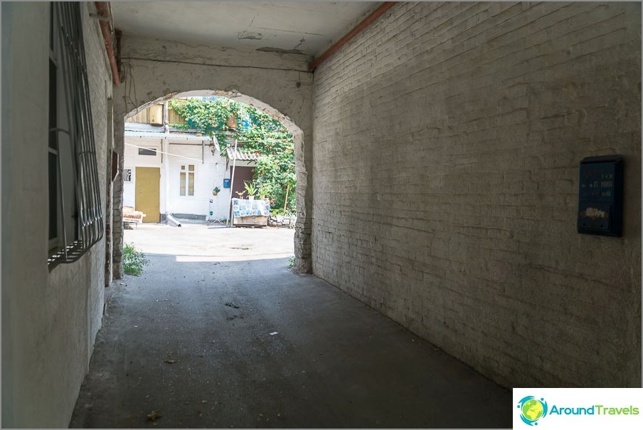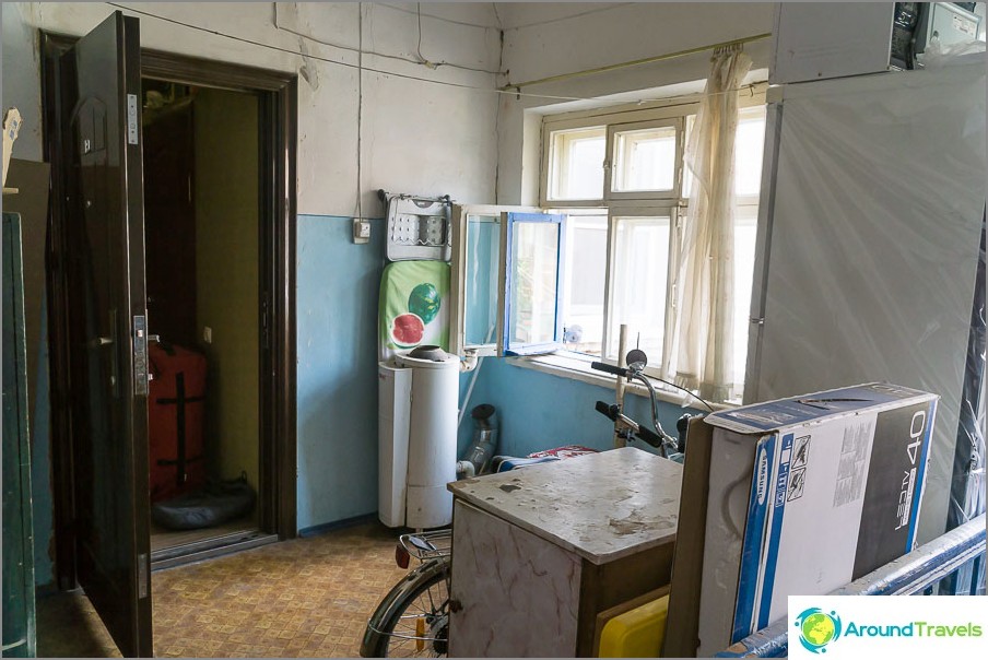 However, this apartment has one peculiarity, the toilet and the bathroom are located in the common corridor. But, as practice has shown, this does not interfere at all. And there is also such an authentic courtyard ...