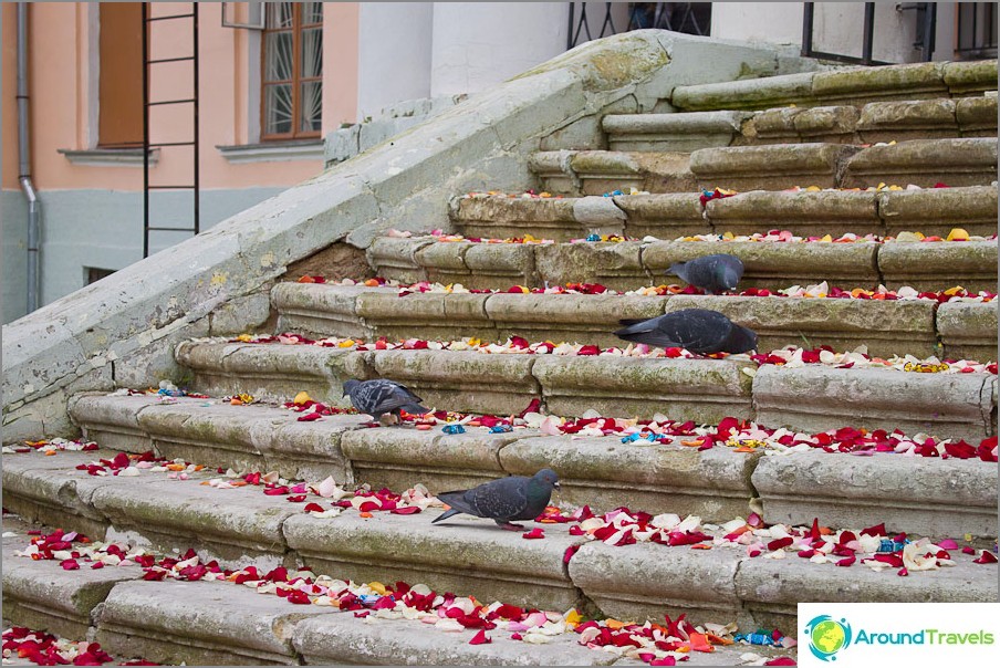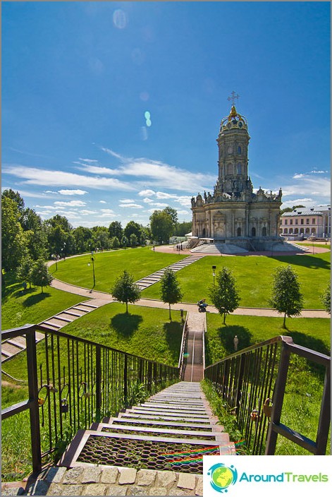 It was built by the order of Prince Golitsyn by unknown architects at the end of the 17th century. According to the priest-guide, there are no such baroque churches in Russia anymore, and the sculptures of saints on the roof are especially unique - nonsense for Orthodox architecture. And due to the fact that it was so strikingly different from ordinary temples, Patriarch Adrian did not even want to illuminate it, and for a number of years it remained unlit. On my own I want to note that she reminded me a little Temple of Truth in Pattaya, not style, of course, but the amount of small details. Moreover, the Church of the Sign seems small only from afar, but when you come close, this feeling immediately disappears.