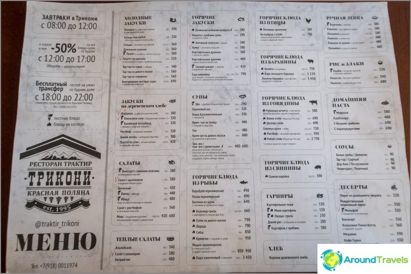 About the tavern «Triconi» I have met several positive reviews and recommendations. So when he got me on my way from Orchard in Krasnaya Polyana in the direction of the Polyansky Vertodrome, without hesitation I turned to the entrance to a low building with a beautiful Nordic facade. I wanted to eat for a long time, so at least one plate of borscht could and should have been mastered.